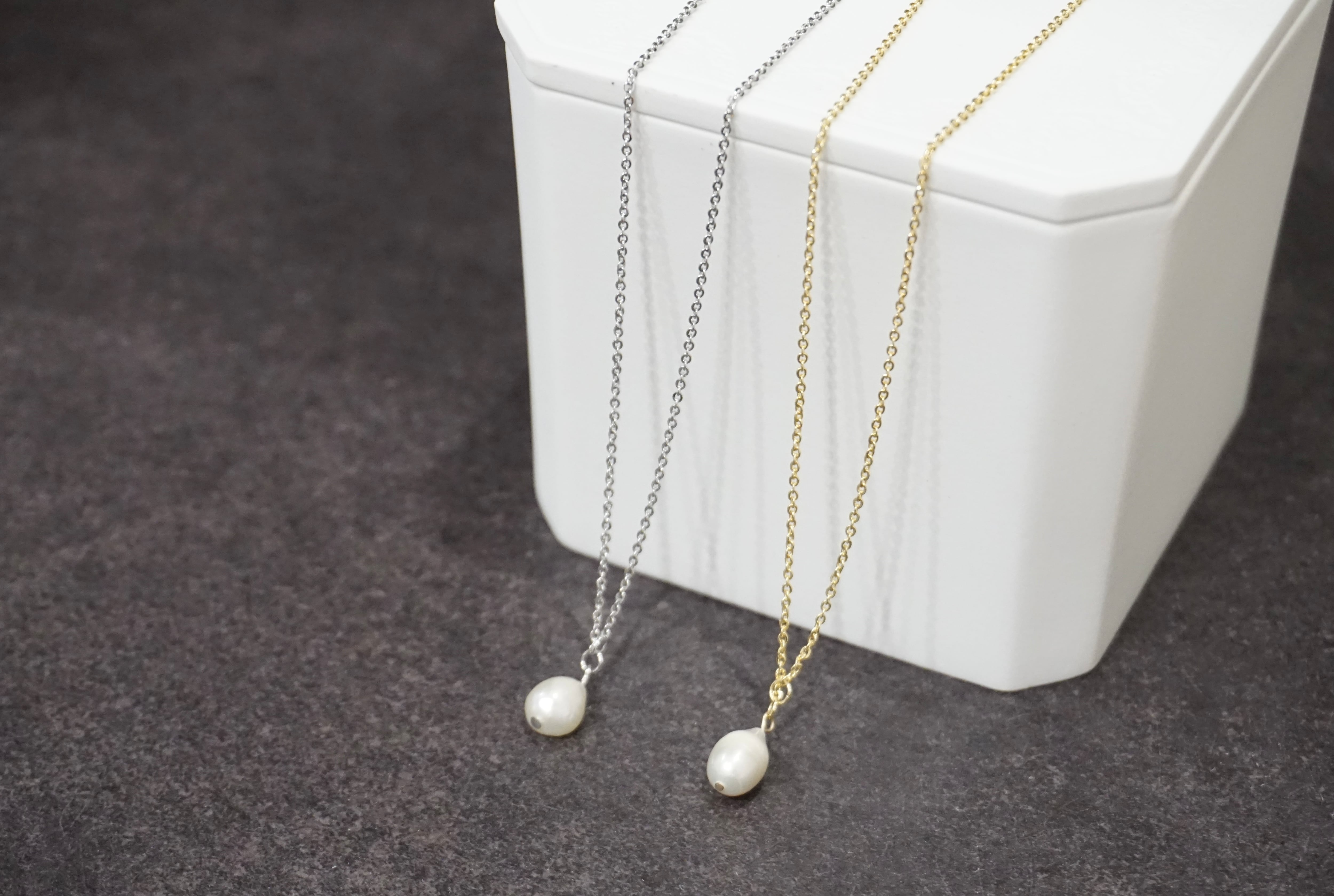 淡水パール一粒のシンプルなネックレスです。